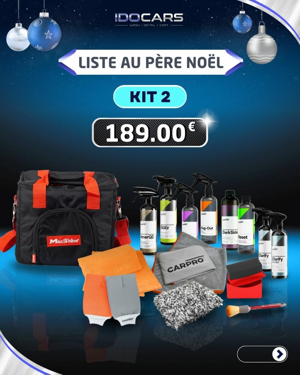 Enfin un SET complet dans un sac de transport MaxShine contenant tout le necessaire pour laver et faire briller ton auto.