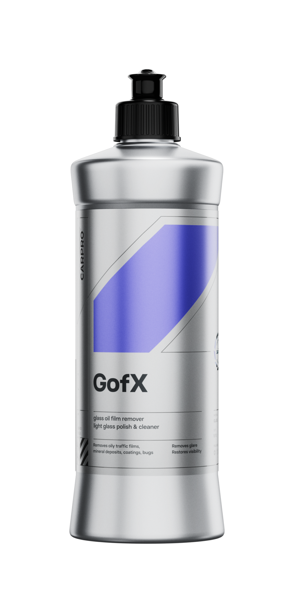 Il s’agit d’un produit de préparation spécialement dédié aux surfaces vitrées extérieures. GOFX permet de retirer de facon efficace: le film routier, les huiles, les dépôts minéraux légés, les coatings et les traces d’insecte persistantes. Indispensable à la préparation post céramique ou d’une protection hydrophobe longue durée. A utiliser à la main ou à la machine.