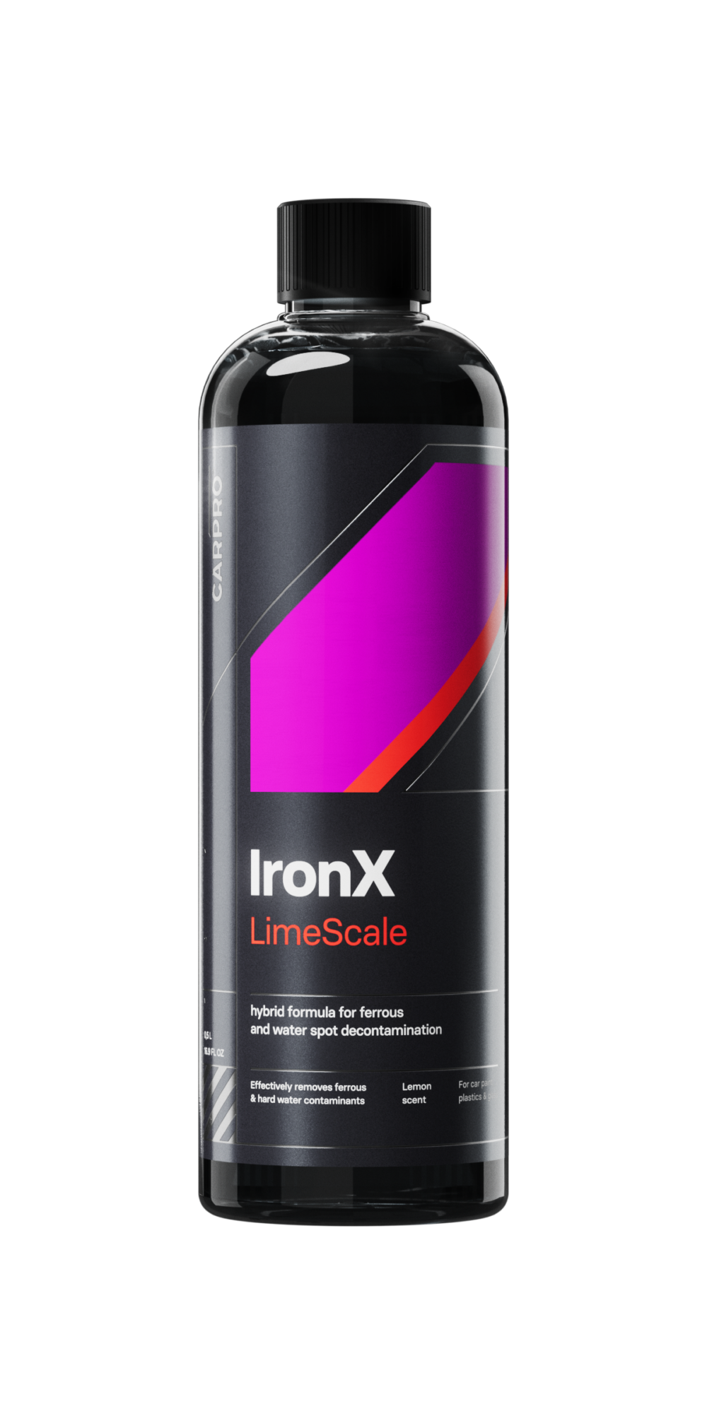 CarPro innove une fois de plus et compléte sa gamme avec une nouveauté qui deviendra à coup sur un MUST TO HAVE : IRON X LIMESCALE est le tout nouveau produit de CarPro destiné à la préparation de votre vernis. Il est l’alliance parfaite entre le décontaminant ferreux IRON X et un puissant décontaminant minéral qui vous permettra de dissoudre les 2 dépôts en une seule action.